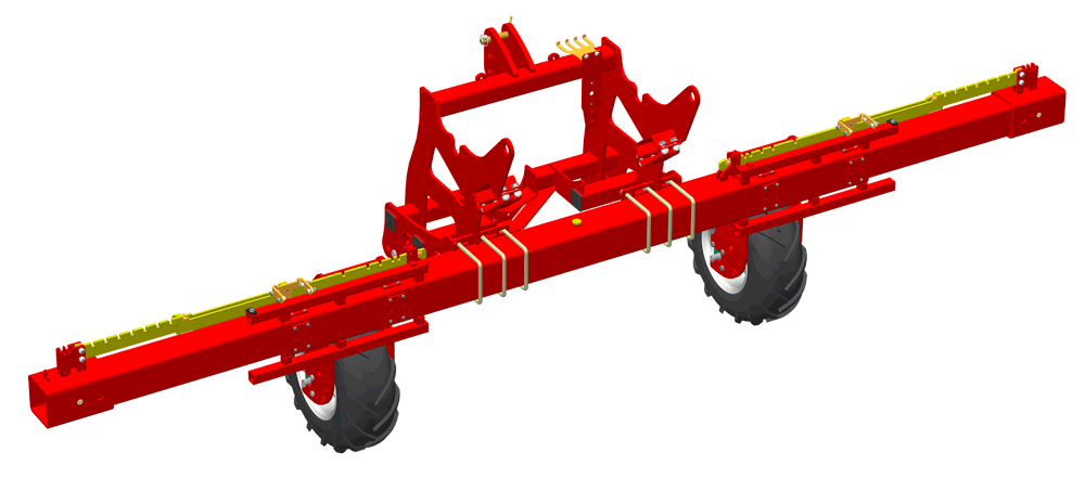 • Telaio a doppia barra telescopico ad alette pieghevoli in verticale tramite azionamento idraulico.